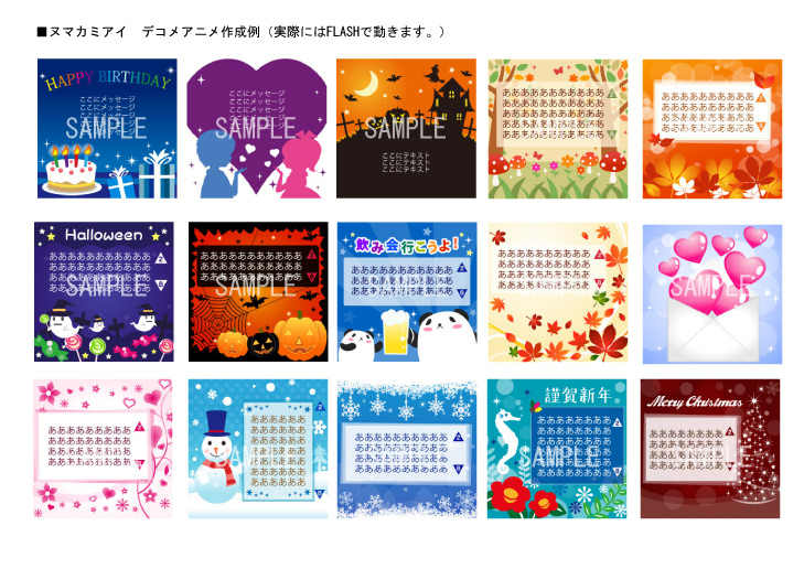 待ち受けFLASH、メニュー画面、発着信画面(GIF、FLASH)、ピクト画像等作成